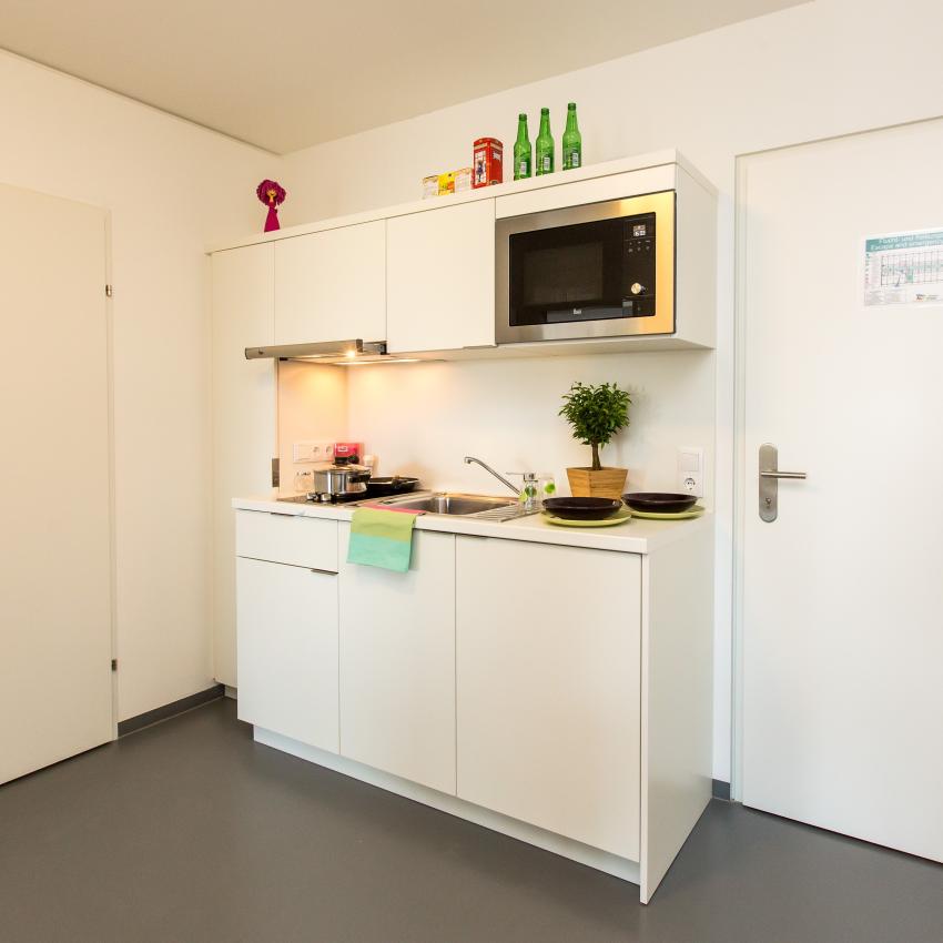 Single und Double Studios gibt es in den Größen von XS bis XXL. Double Studios verfügen über zwei getrennte, versperrbare Wohn-/Schlafräume. Vorraum, Dusche/WC und Küchenzeile werden jeweils von zwei Bewohnerinnen oder Bewohnern gemeinsam genutzt.