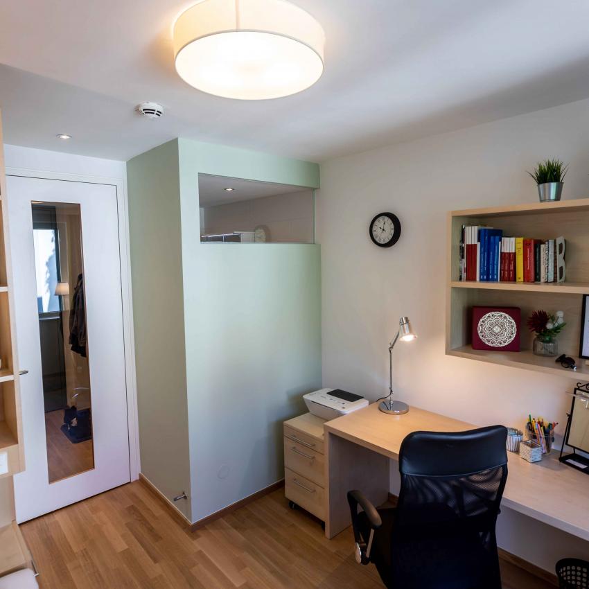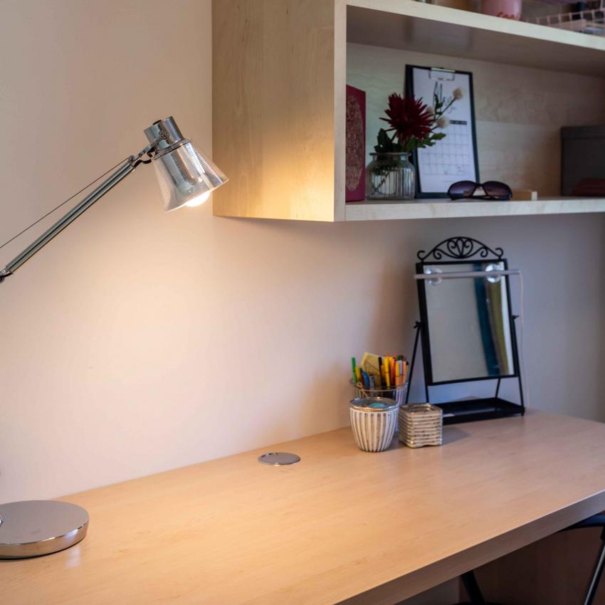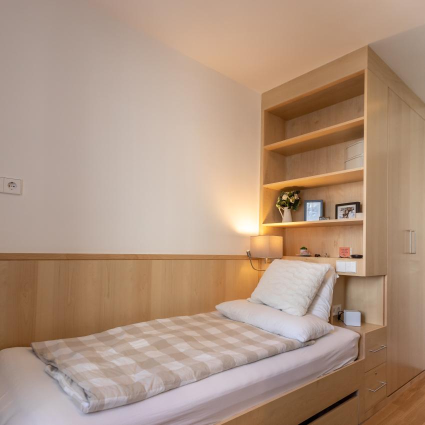 Die 69 Einbettzimmer sind voll möbliert und bieten alles, was du zum Wohnen und Lernen benötigst: Bett, Schreibtisch, Kasten, Regale, Internetanschluss. Dazu gibt es noch ein eigenes Bad und eine eigene kleine Küche - eine kleine Wohlfühl-Oase.
