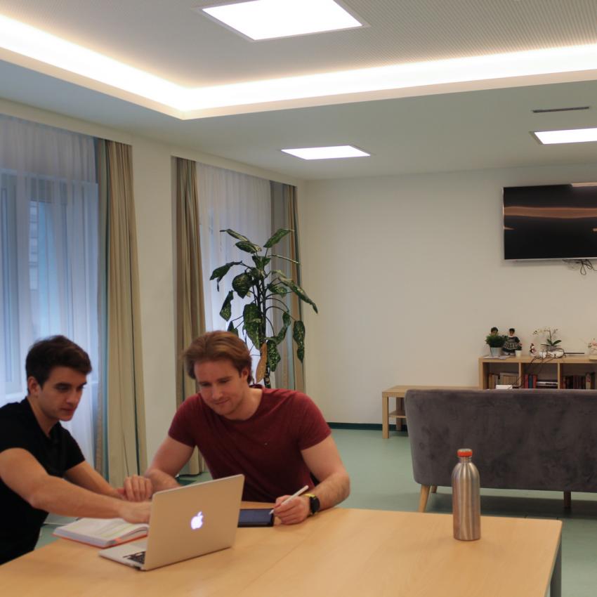 Das Fitnessstudio ist im Haus, ebenso Partyraum und Musikzimmer (alle im Kellergeschoss). Der große Gemeinschaftsraum im Erdgeschoss bietet Platz um gemeinsam zu lernen, er ist Treffpunkt für einen gemeinsamen Kaffee oder einen kleinen Plausch. Die große Gemeinschaftsküche kannst du benützen, solltest du einmal für viele Freunde kochen wollen.