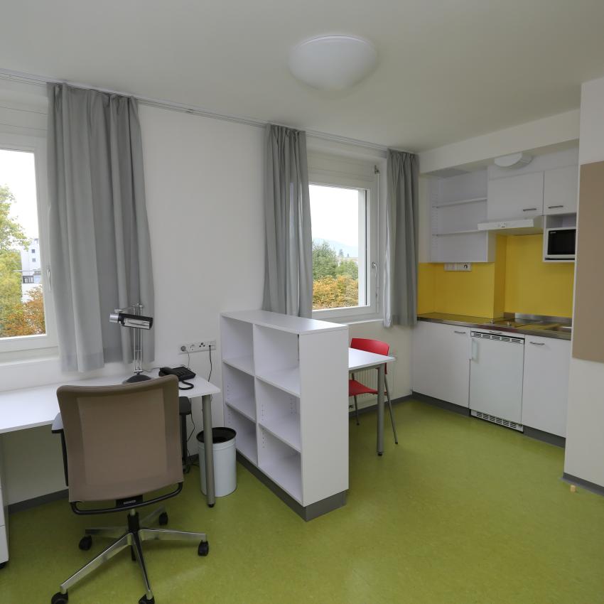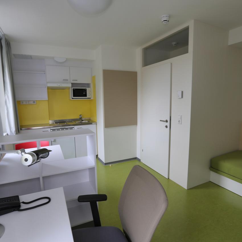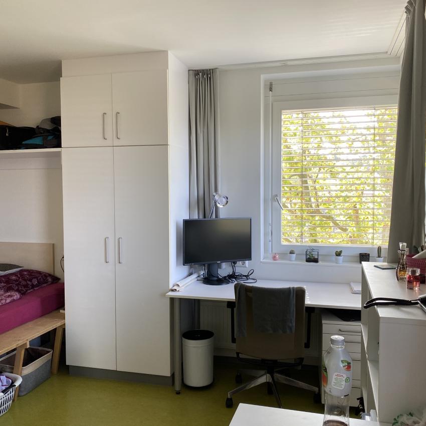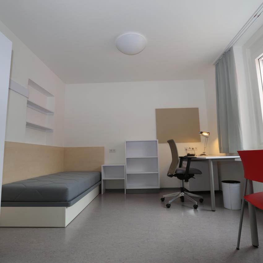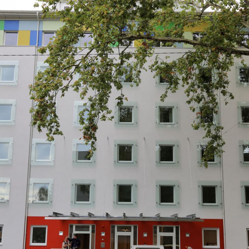Seit der Generalsanierung im Oktober 2013 bietet das Haus in der Elisabethstraße 93, auch bekannt als Elisabethheim, moderne, vollmöblierte Wohneinheiten für 264 Studierende.