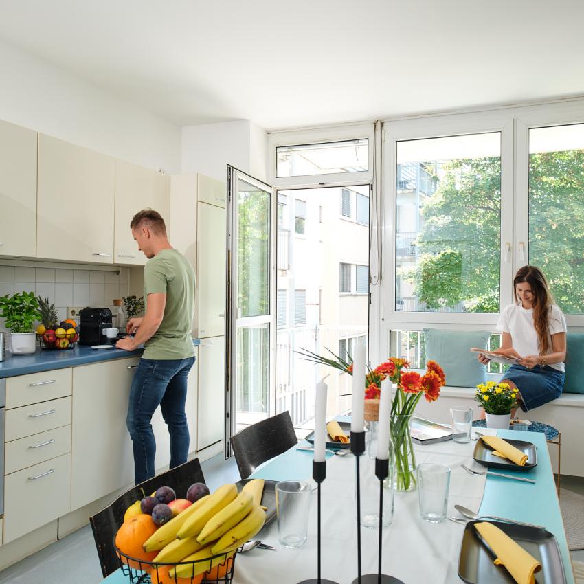 Deine WG hat alles, was du brauchst: einen persönlichen Bereich in deinem Einzelzimmer und zum Teilen eine voll ausgestattete Gemeinschaftsküche, um gemeinsamen zu kochen, sich kennenzulernen und um zu entspannen. Die größeren 5er- und 6er-WGs verfügen sogar über zwei Bäder und zwei WCs – das toppt jede gewöhnliche WG.
