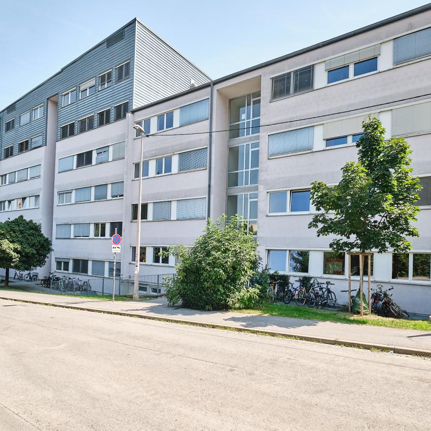 Im Haus Ghegagasse gibt’s ganze 42 Wohngemeinschaften! Ob 2er-, 5er- oder 6er-WG – hier findest du vor allem gemütliche Einzelzimmer, aber auch ein paar Doppelzimmer zum Teilen.