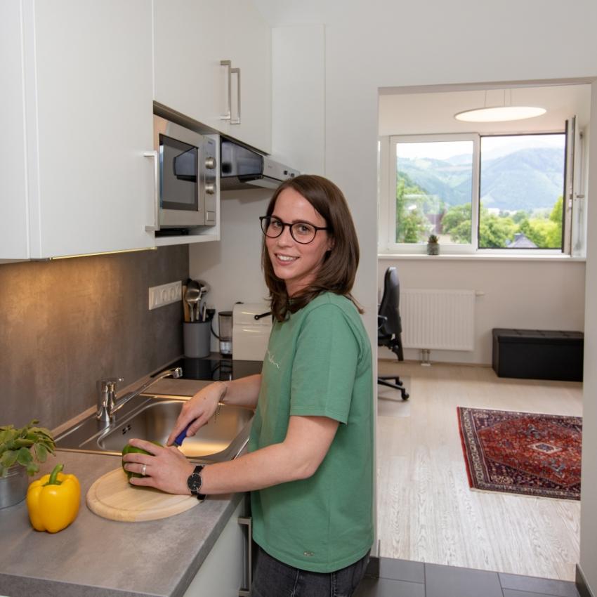 Die Wohnungen befinden sich in ruhiger Grünlage, direkt an der Mur. Das Haus liegt in unmittelbarer Nähe zum Stadtzentrum, nur 5 Gehminuten vom Hauptplatz entfernt. Zur Montanuniversität sind es in etwa 10 Gehminuten. Im Zentrum gibt es zahlreiche Einkaufsmöglichkeiten, urige Wirtshäuser, Restaurants, Cafés und Bars, die nach der Univorlesung zum Einkehren einladen.