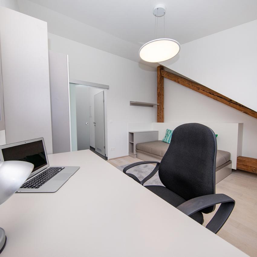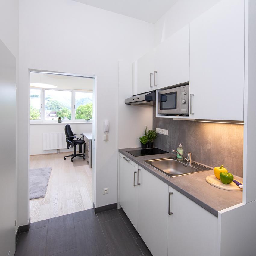 Das Haus Gösserstraße 15 bietet neben all-inclusive Preisen ausschließlich ruhige Einzelzimmer für Studierende an, die der ideale Rückzugsort zum Wohnen, aber vor allem auch zum Studieren sind. Entweder du wohnst in einer Garçonniere und hast ein eigenes Bad/ WC mit eigener Küchenzeile für dich alleine oder wohnst in einem Einzelzimmer in einer „Wohngemeinschaft“ und teilst dir Bad/ WC sowie Küchenzeile mit anderen Bewohnern. Egal für welche Wohnvariante du dich entscheidest, die Einzelzimmer spiegeln trotz des historischen Backgrounds des Hauses den Trend einer zeitgemäßen Ausstattung wider. Alle Zimmer sind voll möbliert und zwischen 10 und 19 m² groß.
