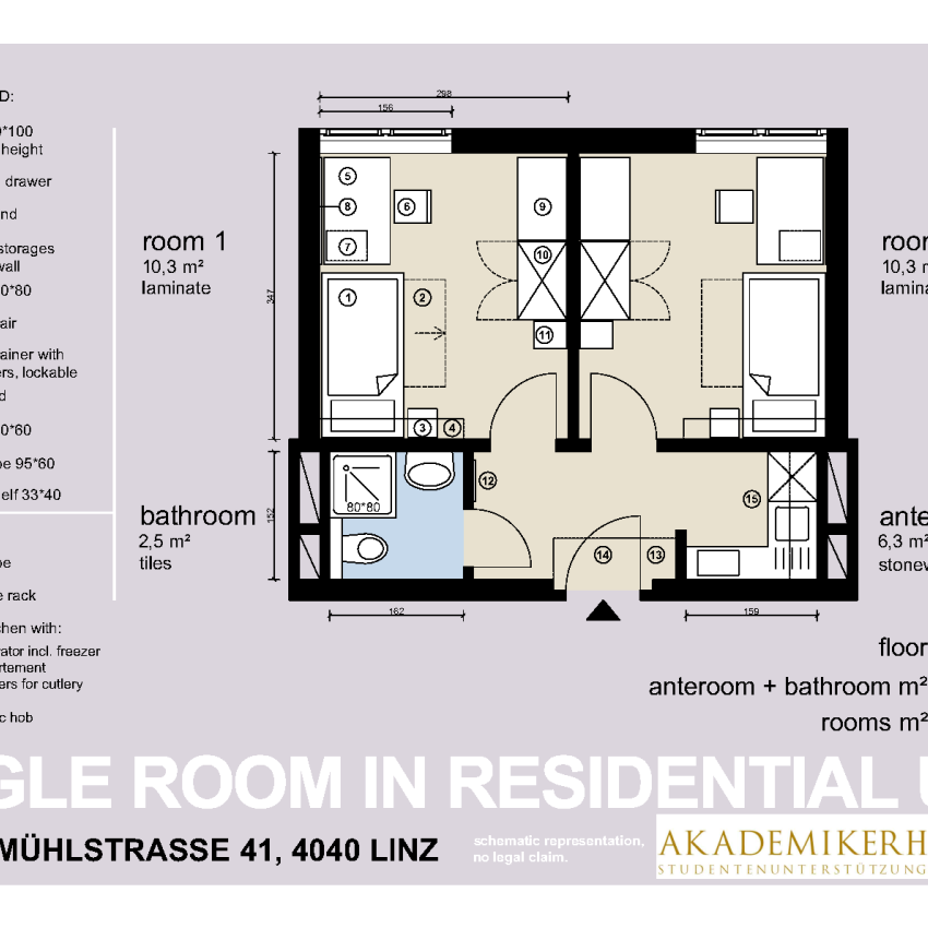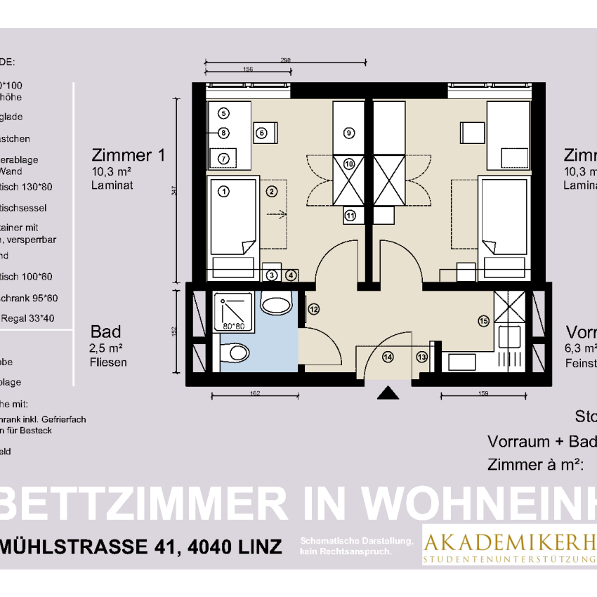 Dann bist du hier genau richtig! Das Wohnheim in der Pulvermühlstraße 41 bietet 100 moderne Kleinwohnungen für zwei Personen mit separaten Einzelzimmern. Mit bester Ausstattung wohnt man hier in bester Lage – angrenzend an einen Park und nur 10 Minuten von der Kepleruni (JKU) entfernt.