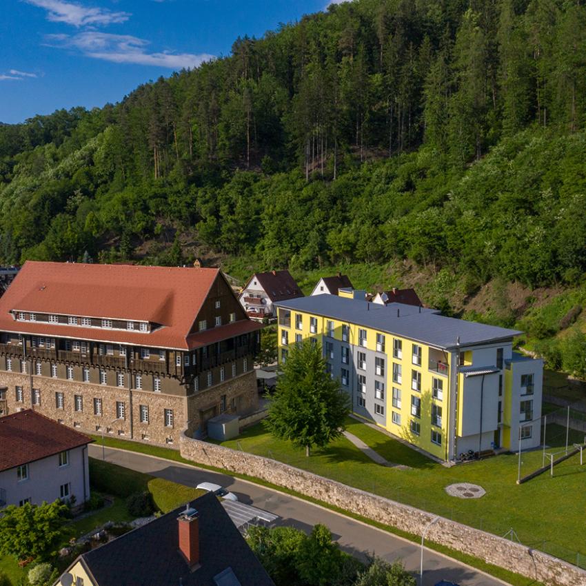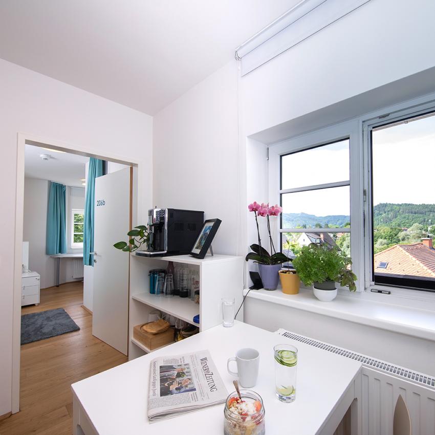 Das Haus mit Bauernhauscharakter lädt zum traditionell-modernen Wohnen im Grünen ein. Es stehen insgesamt 60 Plätze in Garçonnieren und Wohneinheiten zur Verfügung. Alle Wohneinheiten sind mit Bad (Dusche/WC) und Kleinküche ausgestattet, einige haben sogar einen Balkon.