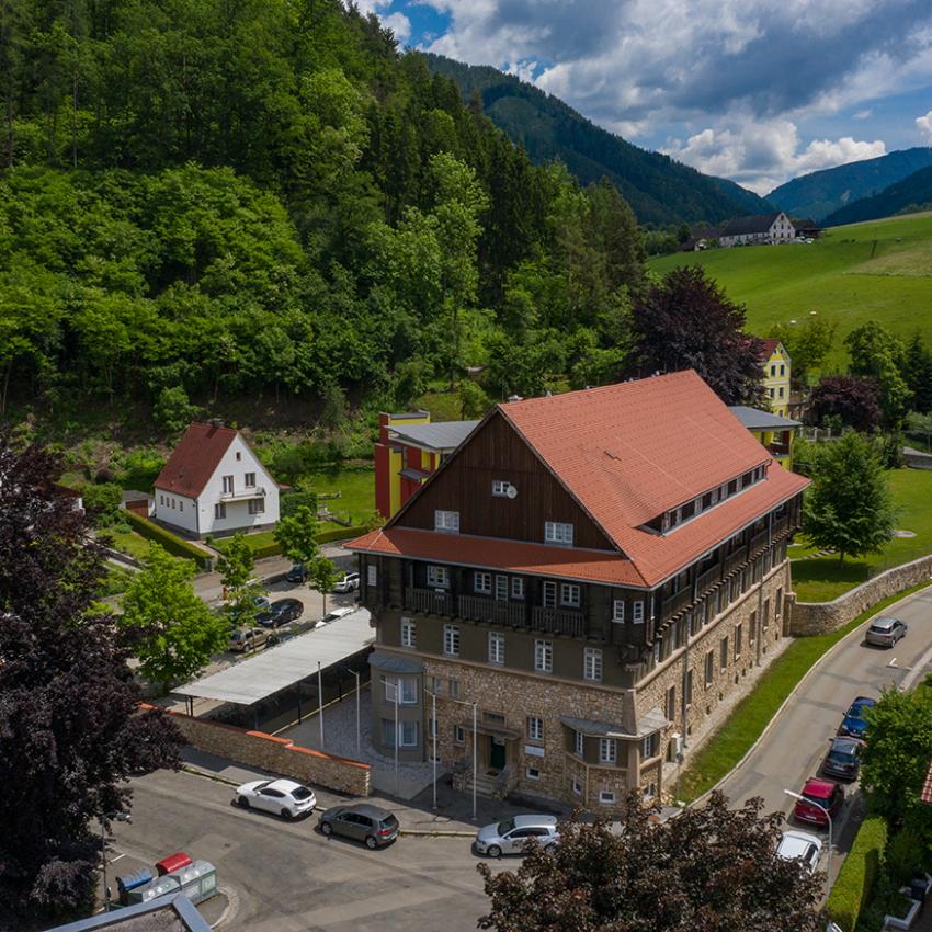 Traditionell, idyllisch und modern - das Haus Schillerstraße 27 spiegelt den „steirischen rural-urban Style“ wider. Außen wie innen lässt das ruhiggelegene Haus für Montanisten der Akademikerhilfe keine Wünsche offen. Mit seinem Bruchsteinmauerwerk, Holzveranden und einem hohen Satteldach ist das Haus schon von außen ein Blickfang. Sobald man es betritt, erlebt man eine andere, moderne Welt des Wohnens. Das Haus wurde in den Jahren 2013/14 komplett renoviert.
