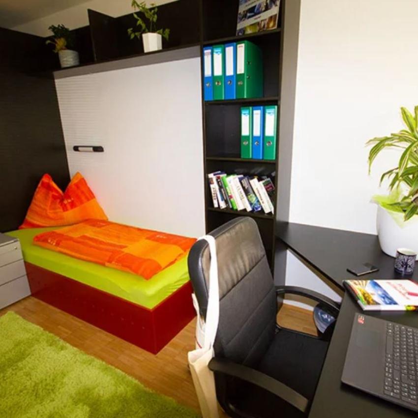 Im Studentenheim Schlägel & Eisen stehen ausschließlich Einzelzimmer in 2er-, 4er-, 5er- und 6er-Wohngemeinschaften zur Verfügung. Die Zimmer sind hell, funktional und speziell auf die Bedürfnisse von Studierenden ausgerichtet. Sie eignen sich sowohl für konzentriertes Lernen als auch für Erholung nach dem Studienalltag.