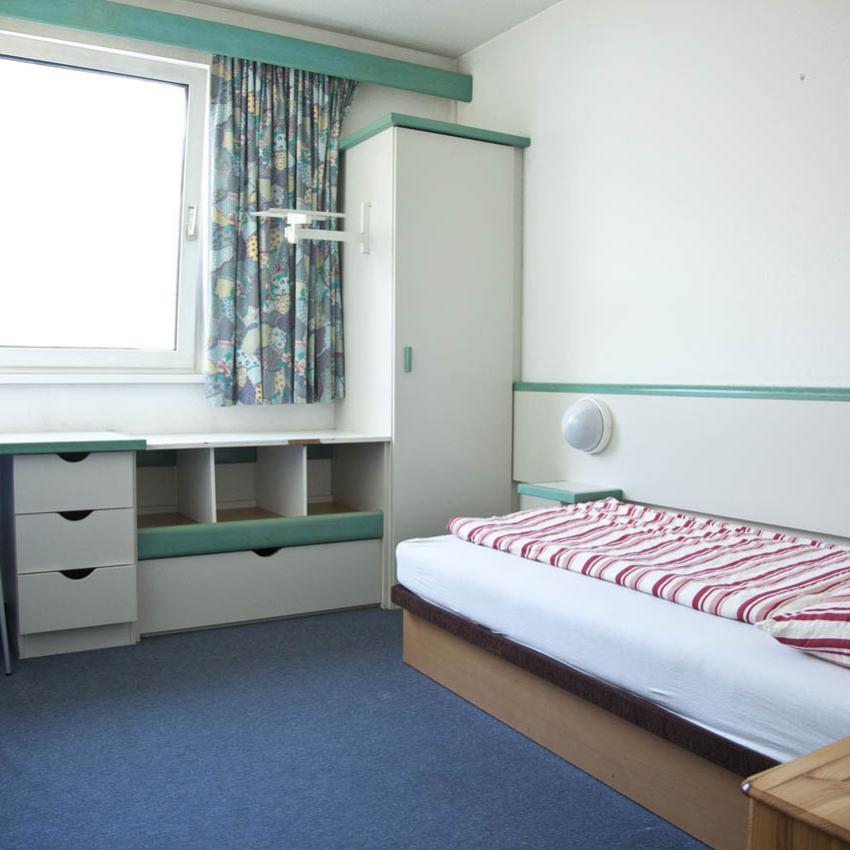 Die Ein- sowie Zweibettzimmer in unserem Studentenwohnheim Schützenstraße sind voll möbliert und verfügen jeweils über ein eigenes Bad und WC. Sie sind zwischen 14 und 17 m² groß und haben einen Internet- und TV-Anschluss. Zum Kochen, Plaudern oder gemütlichen Zusammensitzen laden die freundlichen Gemeinschaftsküchen ein.