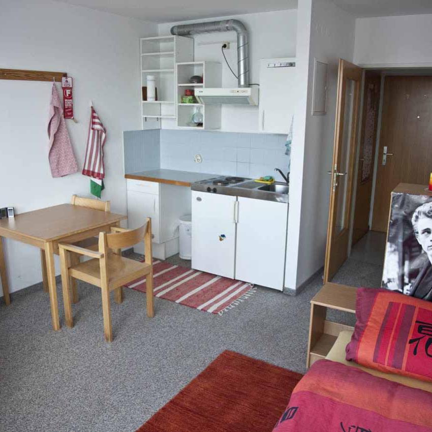 Alle Wohnungen sind voll möbliert. Die Einzelzimmer haben eine Größe von ca. 10 bis 18 m². Internet befindet sich im Zimmer. Die Wohngemeinschaften verfügen über eine gemütliche Sitz- und Essgelegenheit in der Küche.