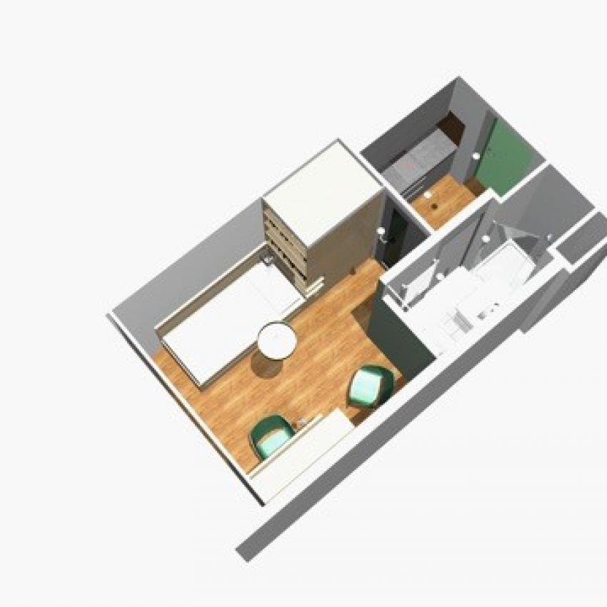 The single rooms are fully furnished and provide everything to make you feel at home: bed, desk, cupboard, shelves, internet access, your own bathroom and a small kitchenette.
