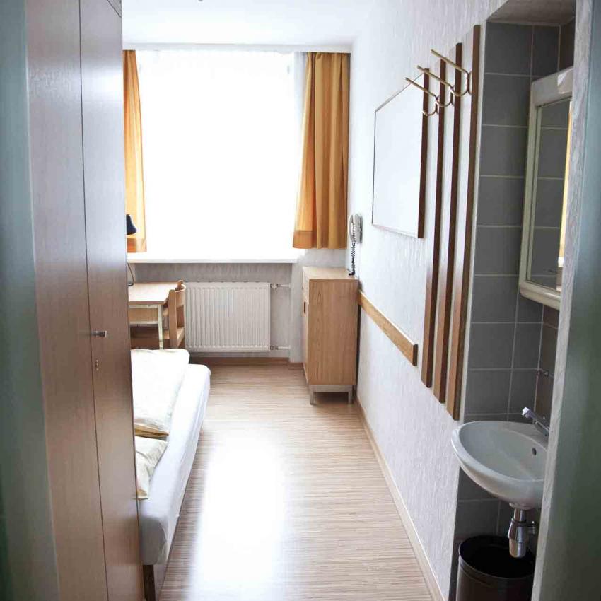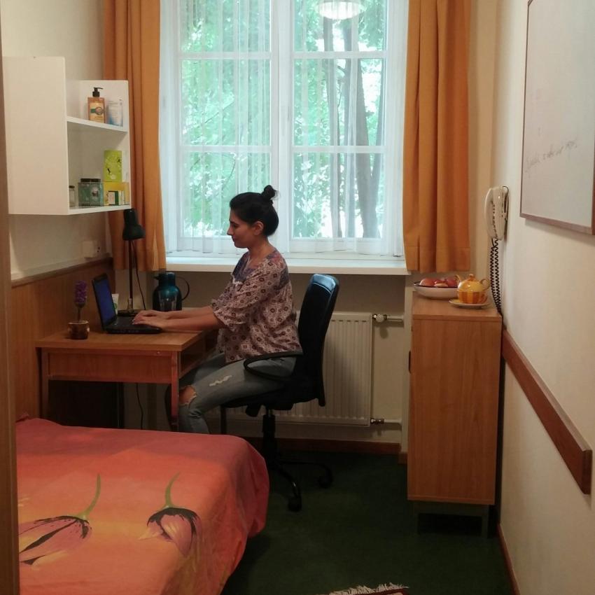 Both the single and twin rooms in the Wiener Heim are fully furnished and have a washbasin directly in the room. Showers and WCs can be found in the corridor and are shared with the floor. Every floor is equipped with a spacious communal kitchen with balcony.