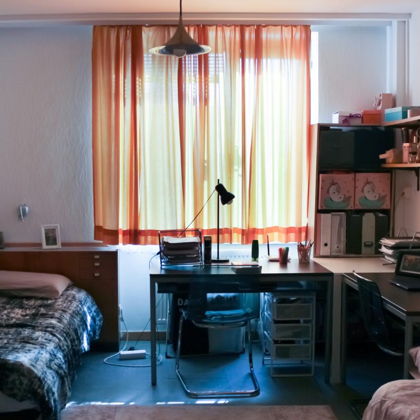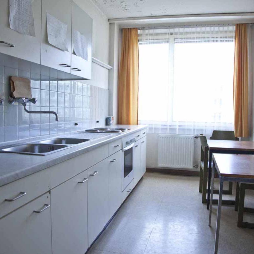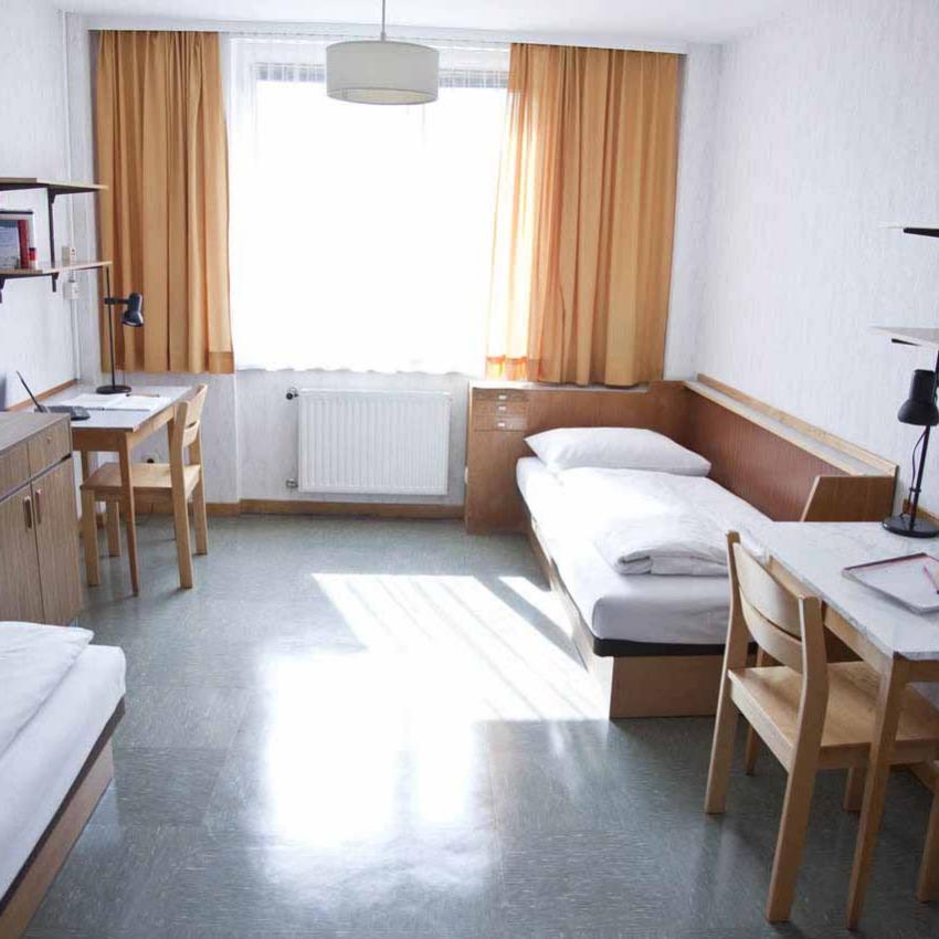 The rooms at Pfeilgasse 1a are fully furnished and offer everything you need for real student life. There are single, joined single, and twin rooms, which measure between 11 and 25 m². All rooms are equipped with their own showers, WCs can be found in the corridor. In the joined single rooms, two single rooms share an anteroom and shower. Students meet to cook in the cosy kitchens on each floor.